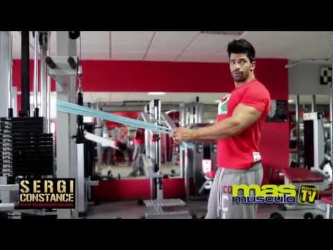 flexiones de bíceps tanto con una banda de resistencia y con pesas te dará